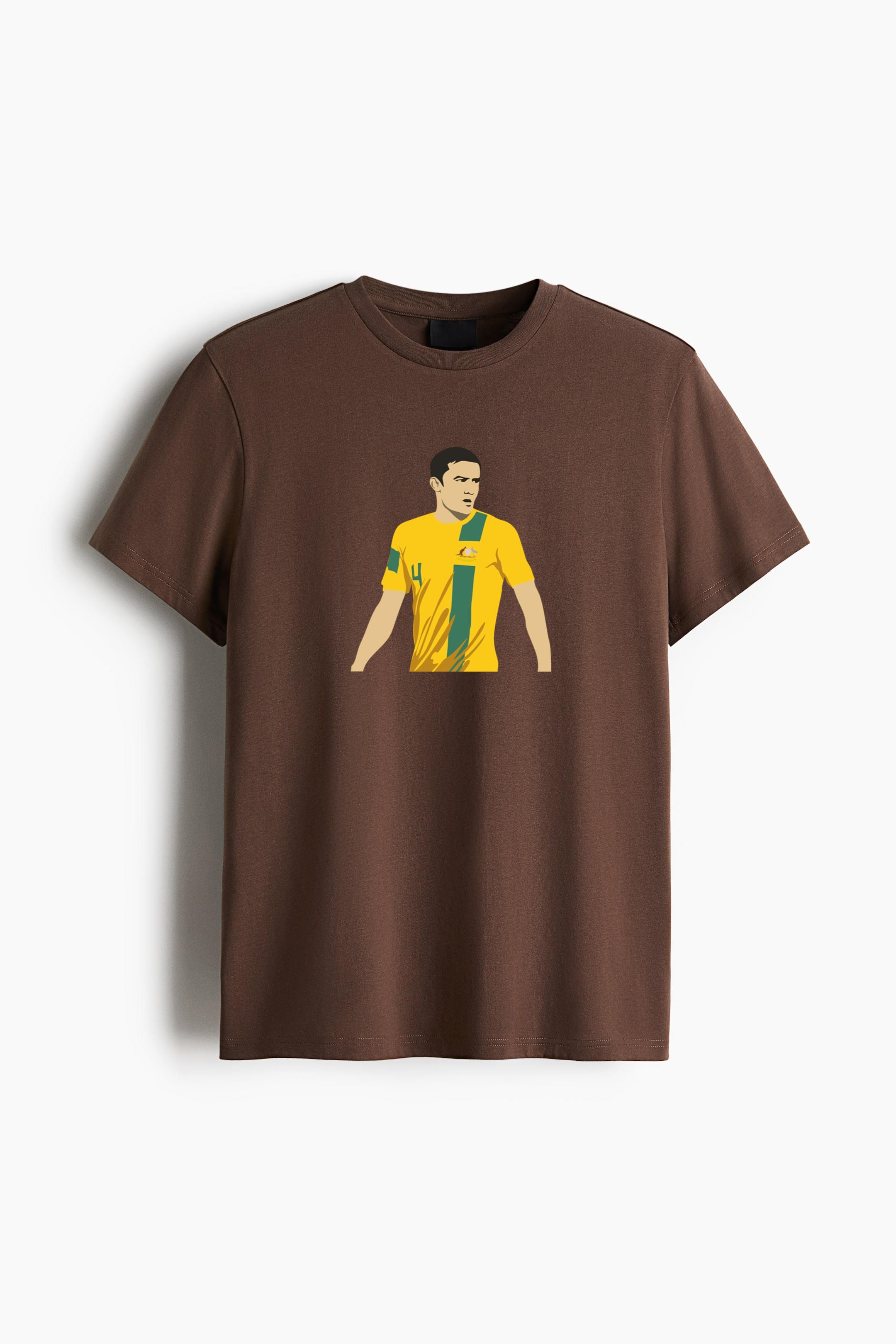 Tim Cahill Cartoon Cotton T-Shirt Cotton T-Shirt – Straight-Cut Soft Cotton Jersey Tee with Ribbed Crew Neck and Dropped Shoulders