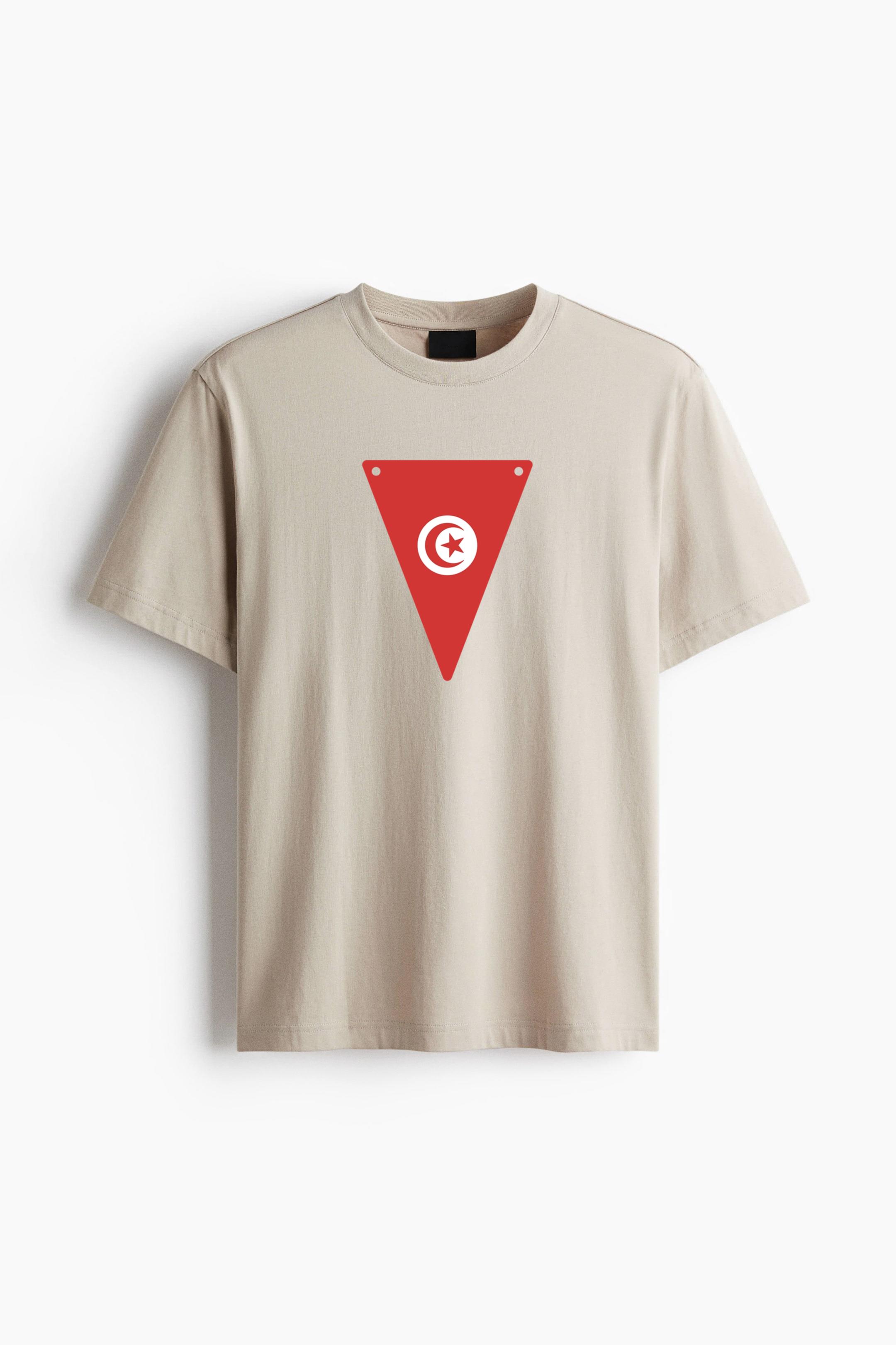 Meet your new favorite everyday tee. This Tunisia Flag Inspired Triangular Pennant Cotton T-Shirt Cotton T-Shirt is made from premium, breathable cotton jersey that feels soft against the skin and holds its shape over time. The straight-cut fit creates a clean, structured look, while the gently dropped shoulders add a relaxed touch without feeling oversized.