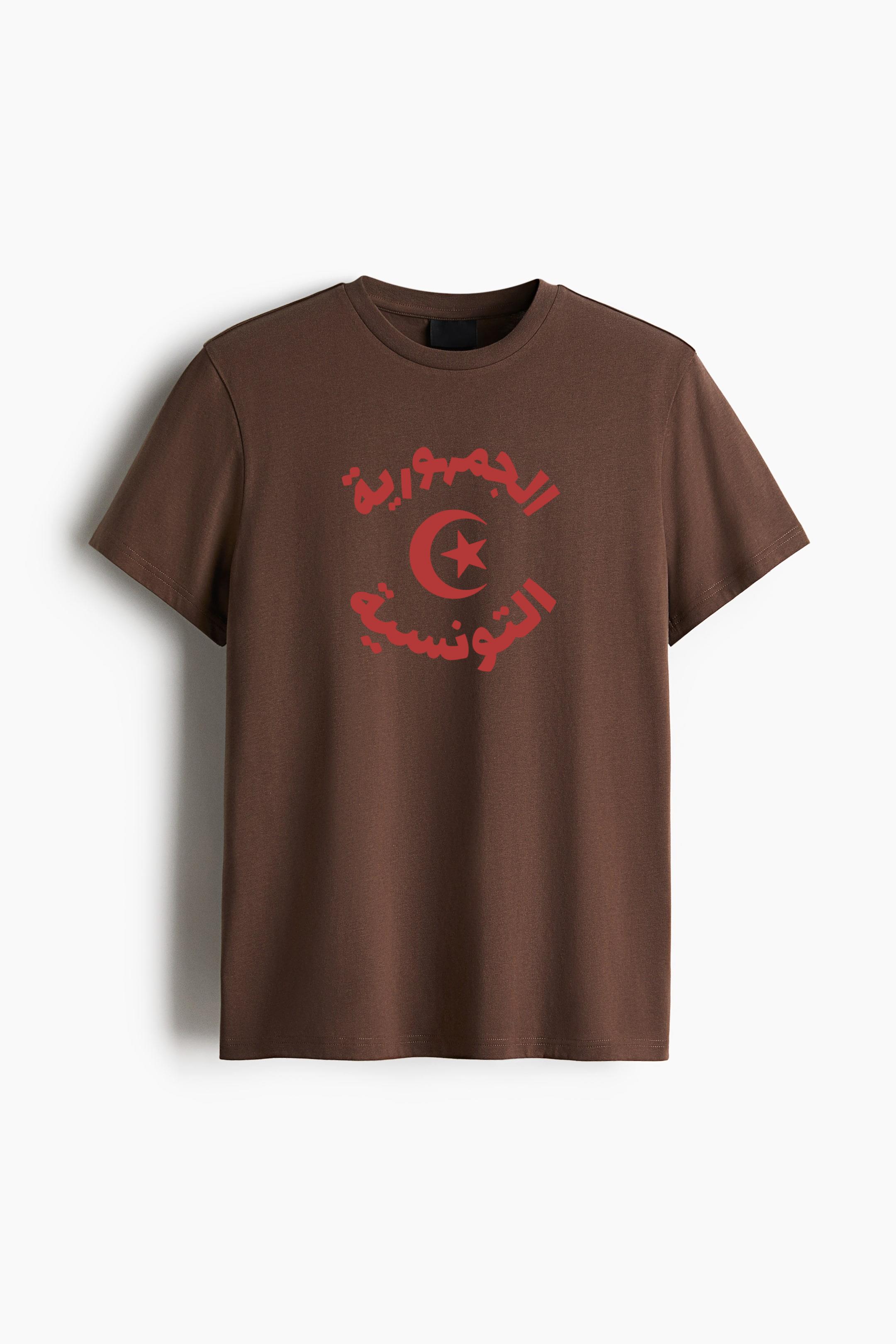 Tunisias Name Written On A National Emblem Cotton T-Shirt Cotton T-Shirt – Straight-Cut Soft Cotton Jersey Tee with Ribbed Crew Neck and Dropped Shoulders