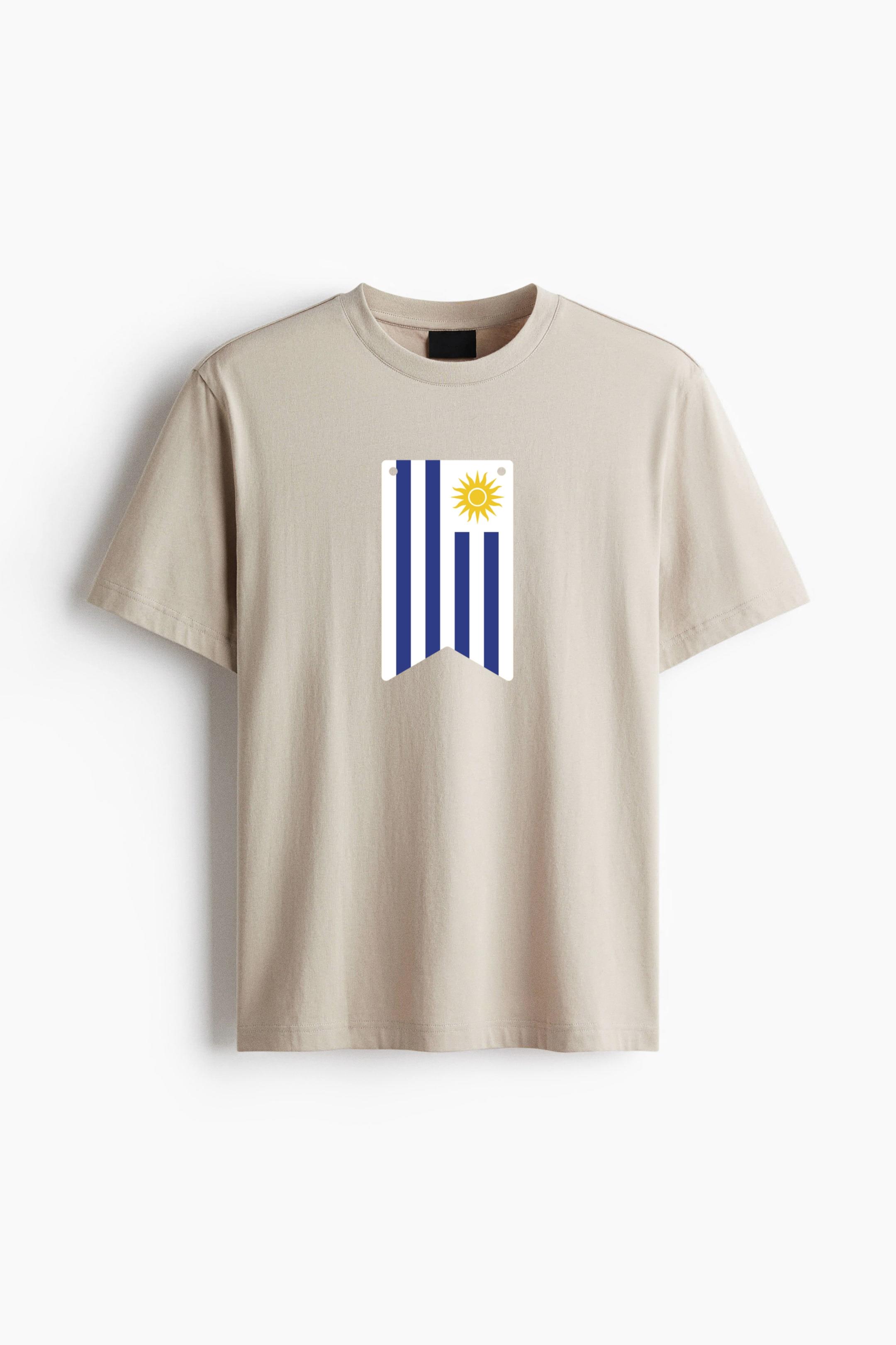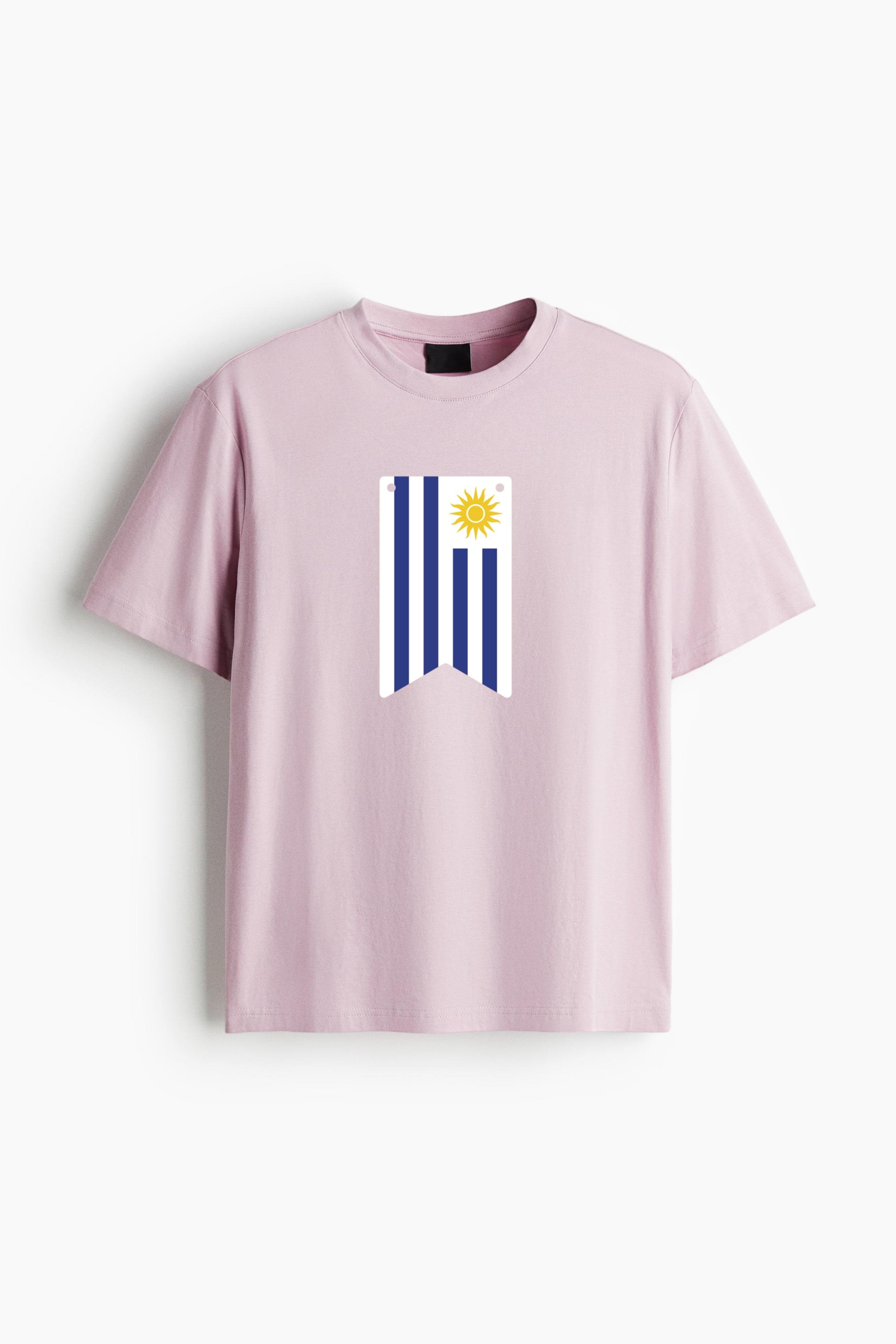 Meet your new favorite everyday tee. This Uruguay Flag Inspired Pennant Cotton T-Shirt Cotton T-Shirt is made from premium, breathable cotton jersey that feels soft against the skin and holds its shape over time. The straight-cut fit creates a clean, structured look, while the gently dropped shoulders add a relaxed touch without feeling oversized.