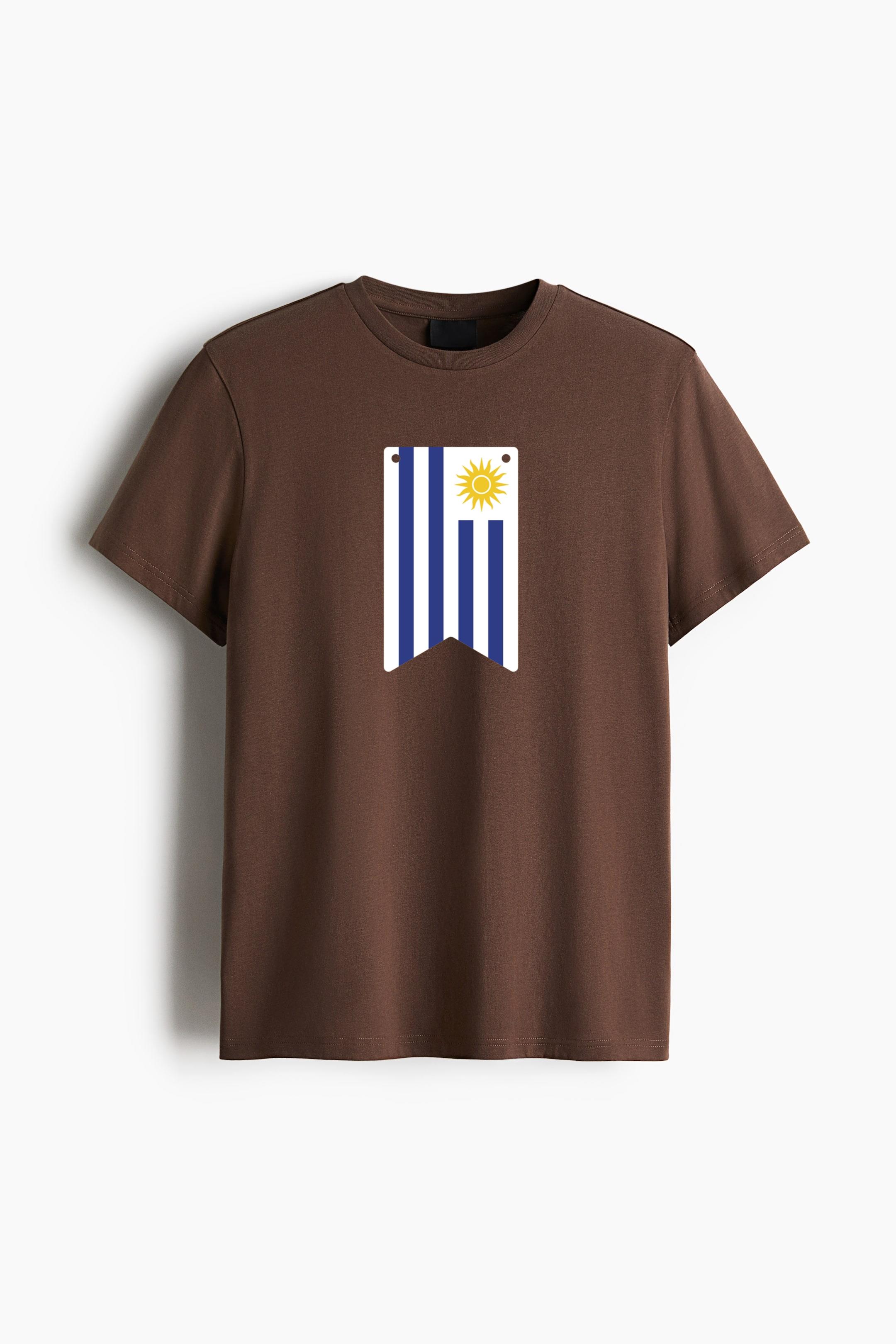 Uruguay Flag Inspired Pennant Cotton T-Shirt Cotton T-Shirt – Straight-Cut Soft Cotton Jersey Tee with Ribbed Crew Neck and Dropped Shoulders