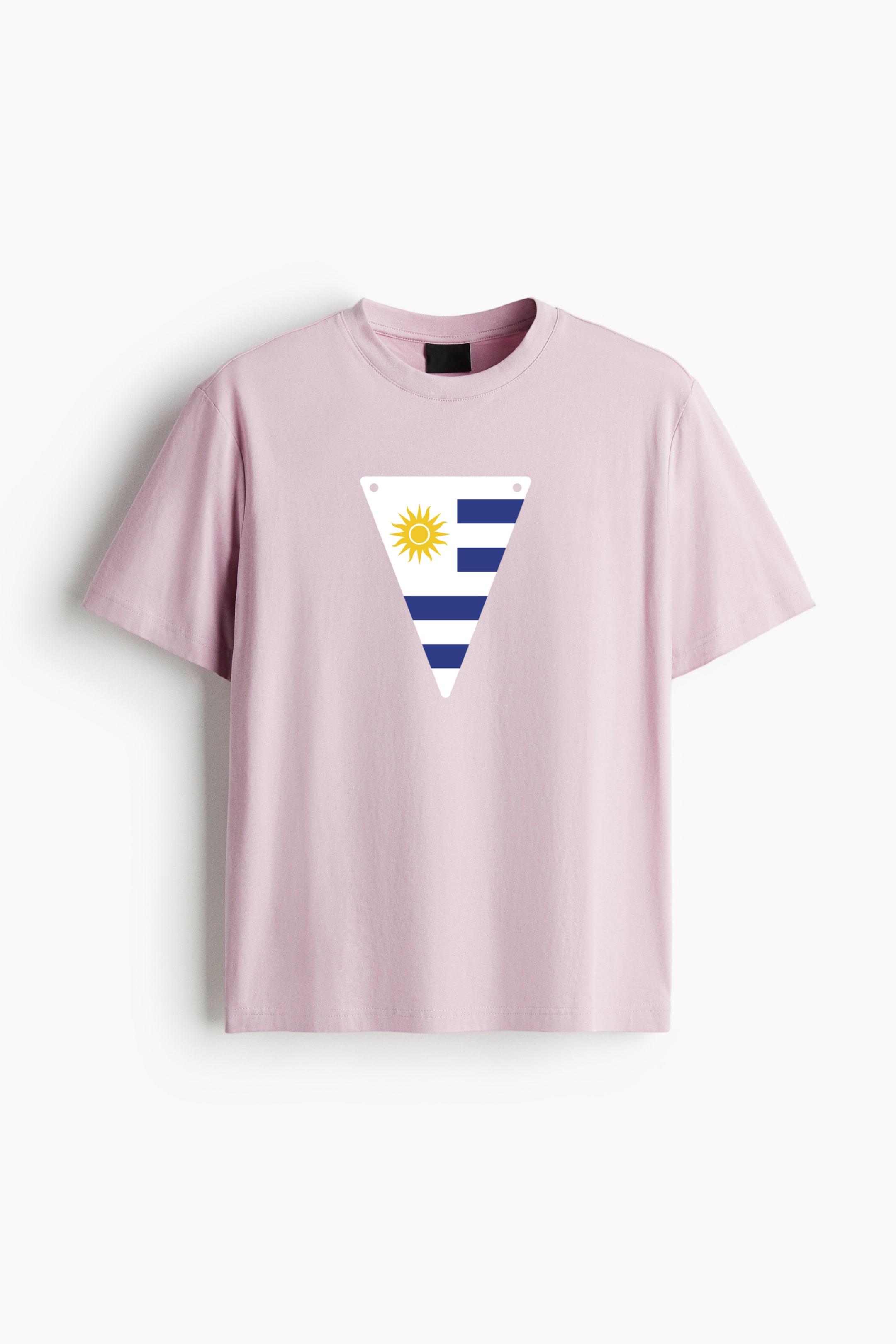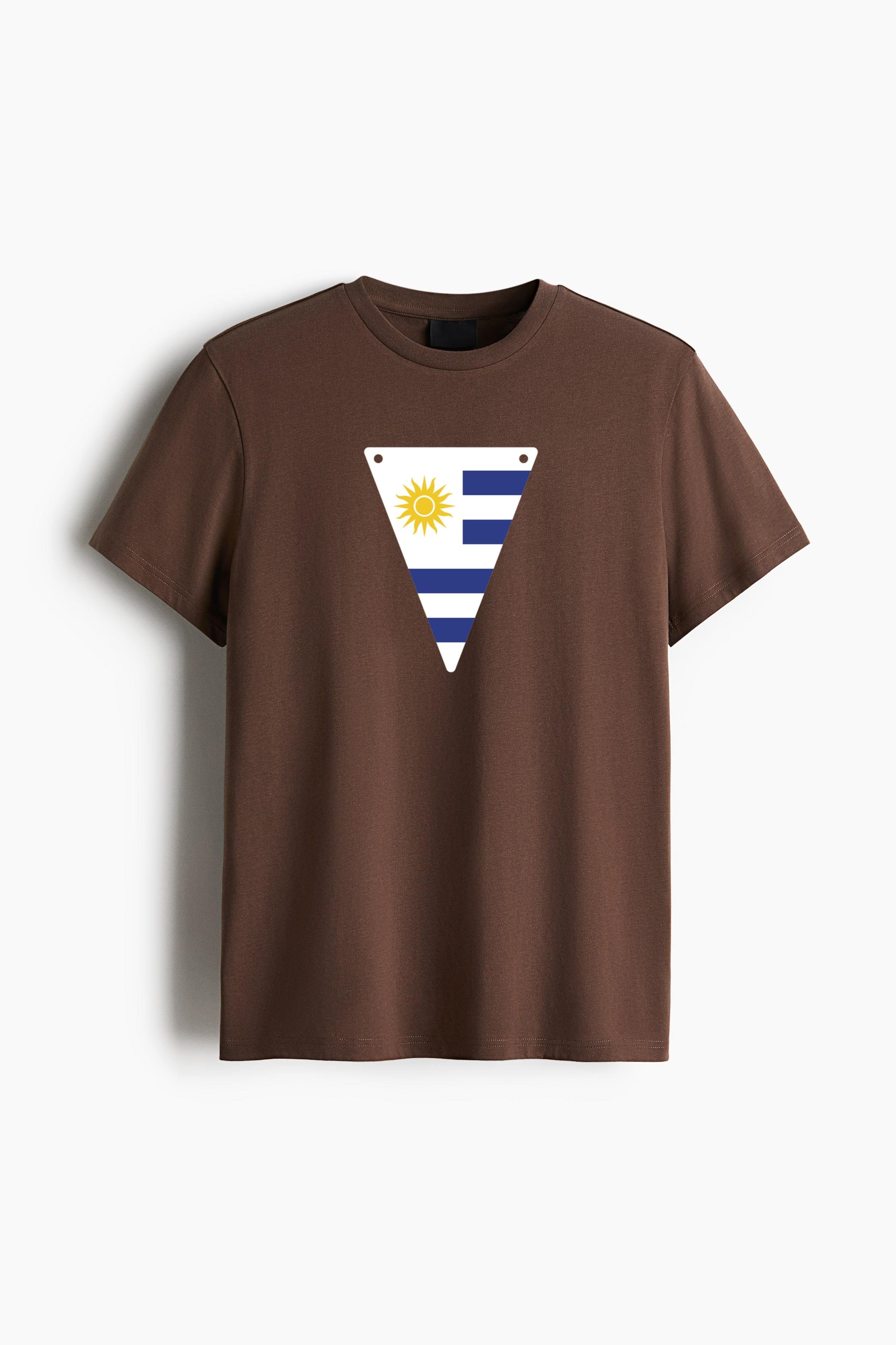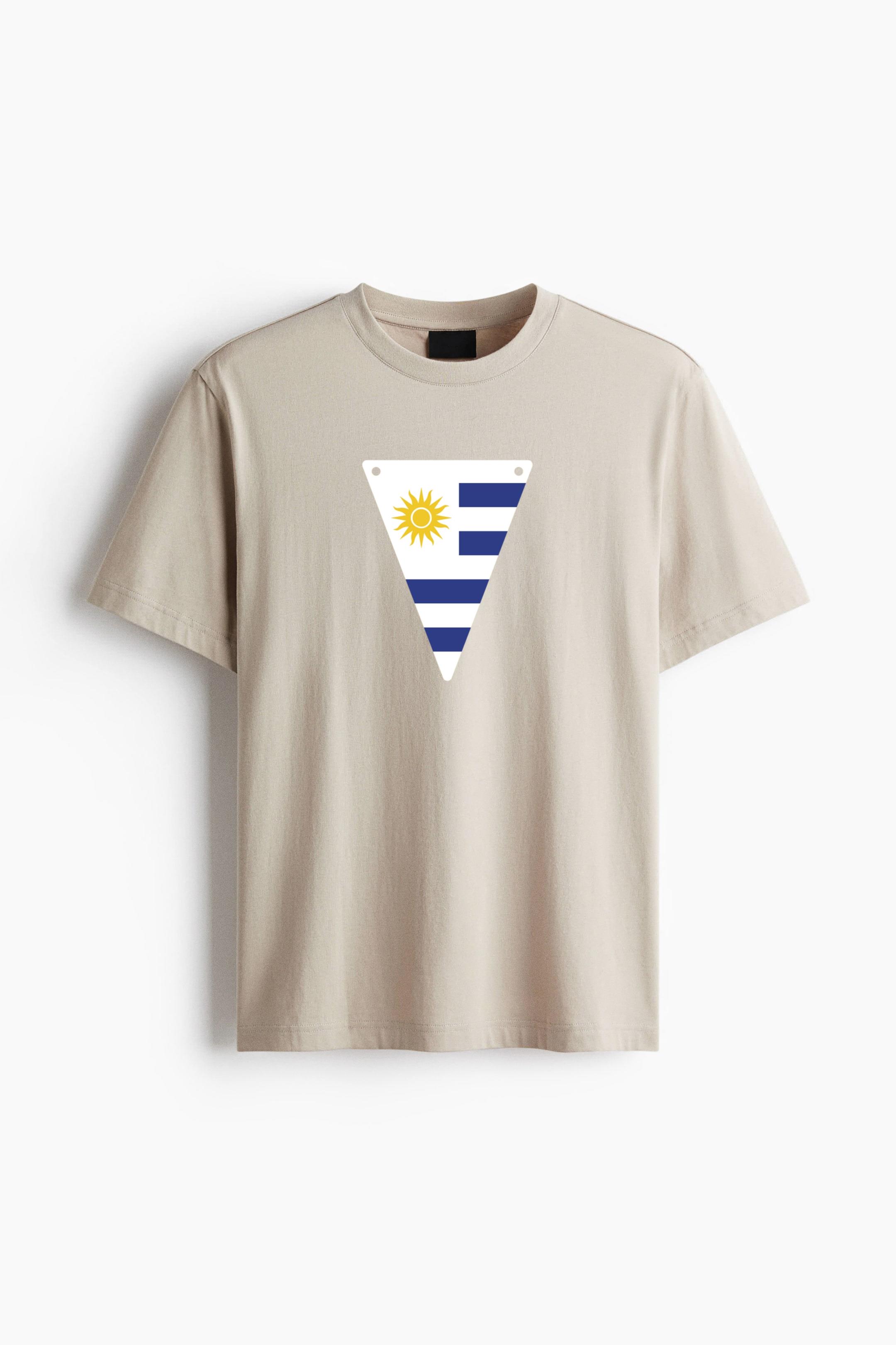 Meet your new favorite everyday tee. This Uruguay Flag Inspired Triangular Pennant Cotton T-Shirt Cotton T-Shirt is made from premium, breathable cotton jersey that feels soft against the skin and holds its shape over time. The straight-cut fit creates a clean, structured look, while the gently dropped shoulders add a relaxed touch without feeling oversized.