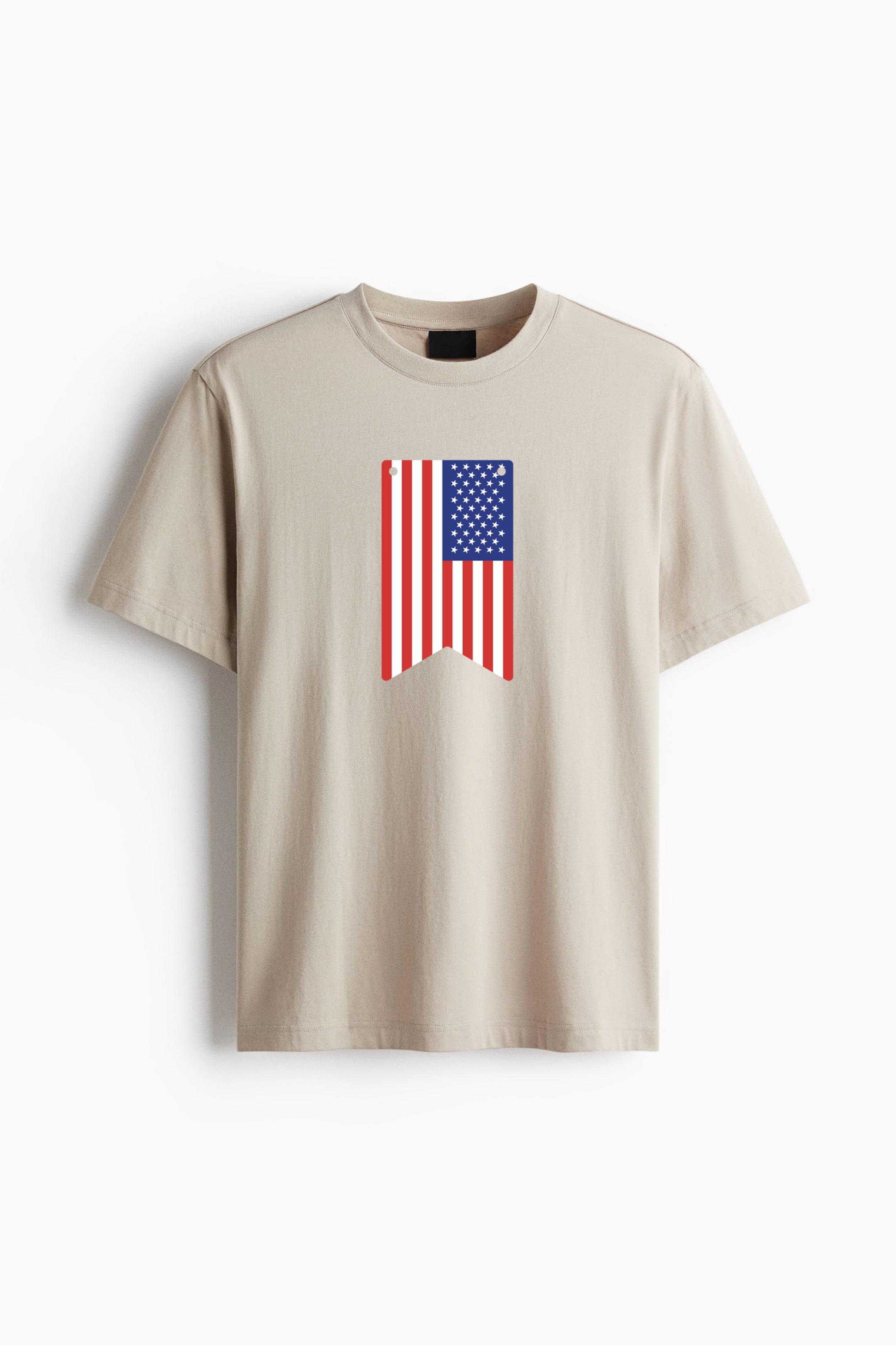 Meet your new favorite everyday tee. This Usa Flag Inspired Pennant Cotton T-Shirt Cotton T-Shirt is made from premium, breathable cotton jersey that feels soft against the skin and holds its shape over time. The straight-cut fit creates a clean, structured look, while the gently dropped shoulders add a relaxed touch without feeling oversized.