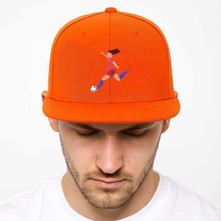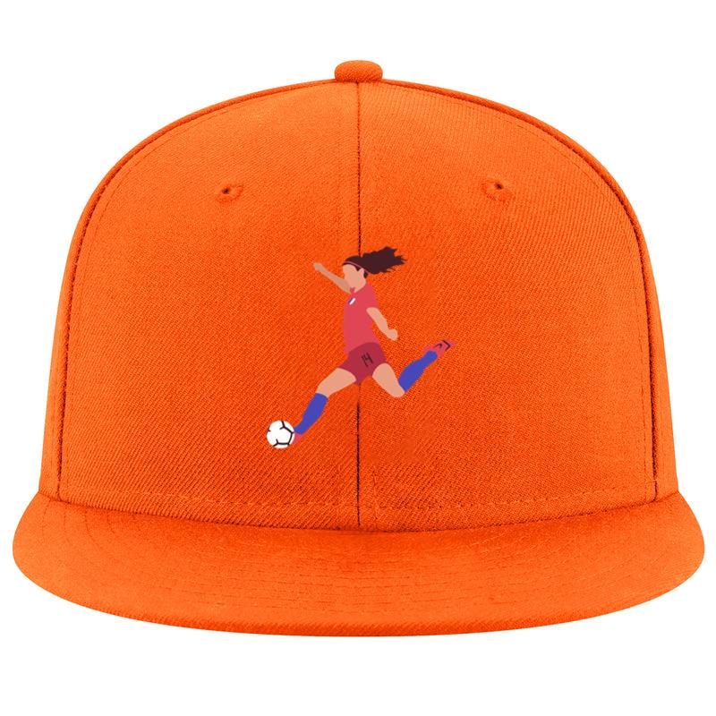 The Woman Soccer Player Kicking Football Flat Snapback Hat Snapback Hat is a timeless streetwear essential, built with a structured 6-panel silhouette and a durable cotton or cotton-blend twill fabric. The flat brim adds a bold, modern edge, while the adjustable snapback closure allows for a personalized fit.