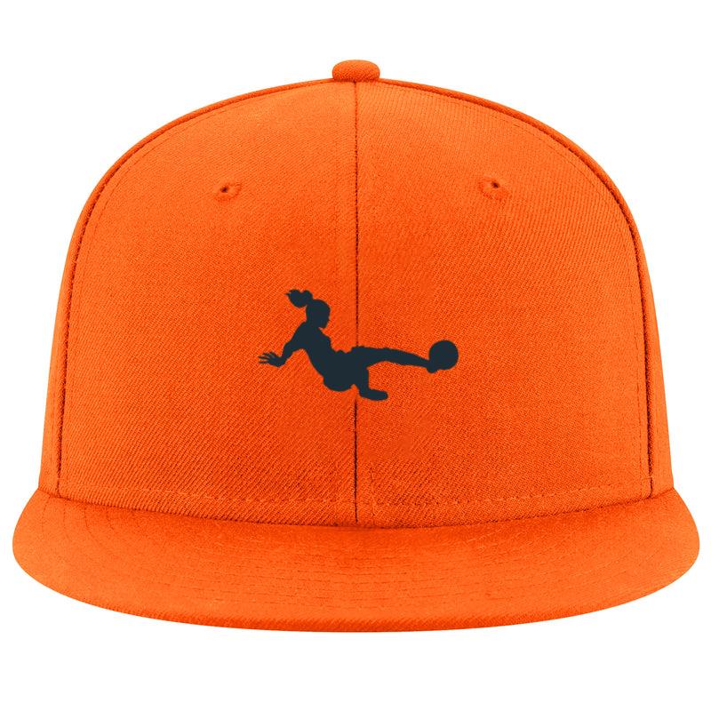 The Woman Soccer Player Tackling Silhouette Snapback Hat Snapback Hat is a timeless streetwear essential, built with a structured 6-panel silhouette and a durable cotton or cotton-blend twill fabric. The flat brim adds a bold, modern edge, while the adjustable snapback closure allows for a personalized fit.